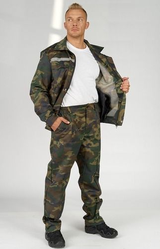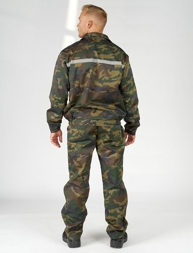 Ткань: “Грета” КМФ пр-во Моготекс, смесовая 51% х/б, 49% п/э, пл.210г/м2. ВО. СВО. ТР ТС 019/2011. Костюм состоит из куртки и брюк. Светоотражающая лента шириной 2,5 см. на кокетке. Куртка застегивается на молнию и на кнопки, имеет отложной воротник и ветрозащитную планку. Брюки со стрелками на резинке.