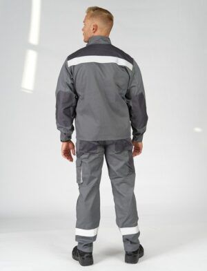 Ткань: “Грета” пр-во Моготекс, смесовая 51% х/б,49% п/э, пл.210г/м2, ВО (возможен отшив из антистатической ткани) . Утеплитель синтепон 300 г/м2 и 100 г/м2 ватин шерстеной. Флисовый воротник. Световозвращающая лента шириной 5 см на спинке, груди, рукавах, по низу брюк. ТР ТС 019/2011. Возможен отшив с изменениями по модели и цветам