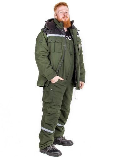 Ткань: “Авангард” пр-во Моготекс RipStop. Утеплитель синтепон 400 г/м2 . Флисовый воротник. Световозвращающая лента шириной 5 см на спинке, груди, рукавах, по низу брюк. Карман под бейдж. ТР ТС 019/2011. Возможен отшив с изменениями по модели и цветам
