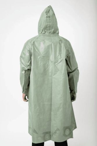 Плащ прорезиненный, цвет – зеленый, швы проклеены. Материал: БЦК