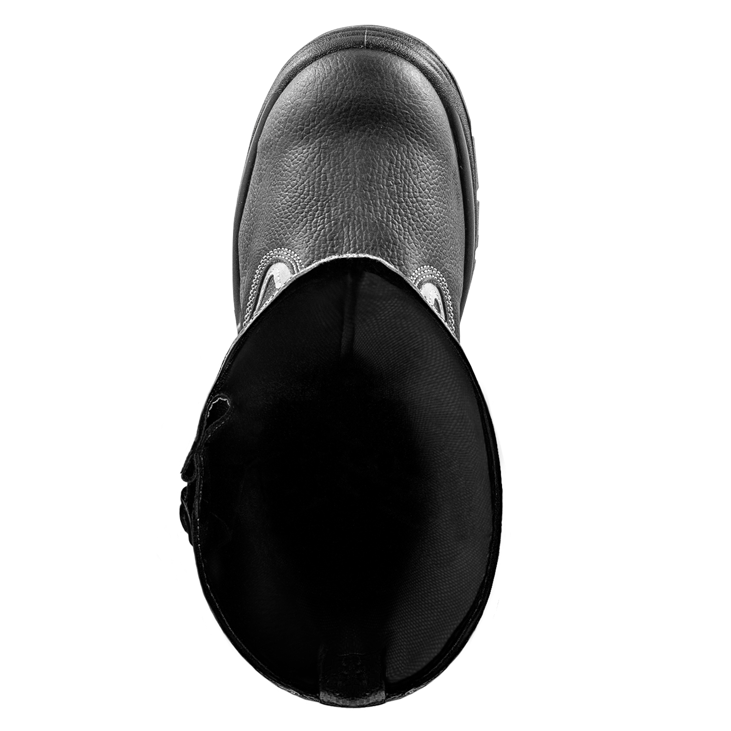 Рабочие сапоги на двухслойной ПУ/ПУ (полиуретановой) подошве изготовлены из натуральной юфтевой кожи устойчивой к воздействию агрессивных внешних факторов. Подошва изготовлена литьевым методом, устойчива к воздействию кислотно-щелочных веществ (до 20%), масло-бензольных соединений и нефтепродуктов. Рабочая температура эксплуатации ботинок от -35°С до +85°С. Амортизатор в пяточной части сапога обеспечивает дополнительный комфорт для ног. Анатомическая стелька из ЭВА обеспечивает комфорт носки и снижает нагрузку на суставы ног.
