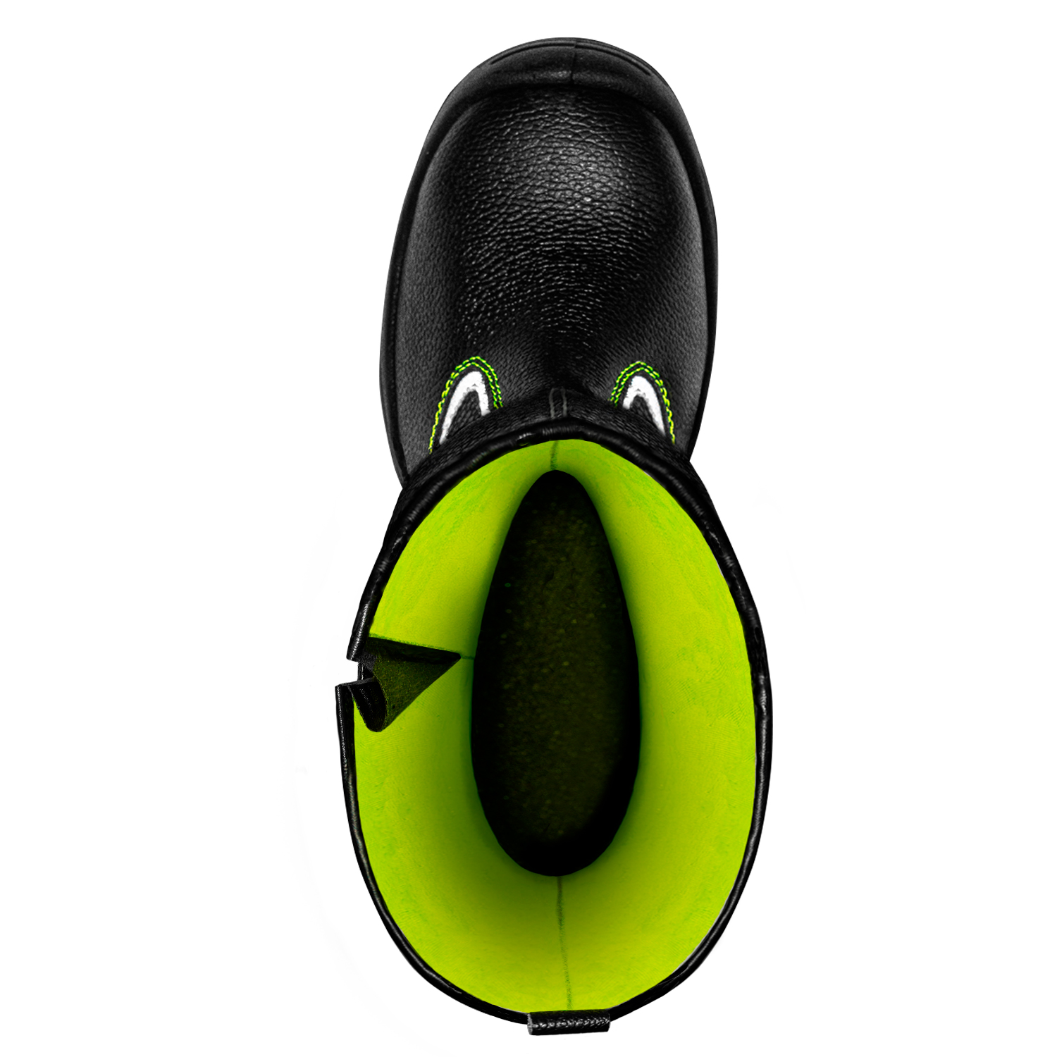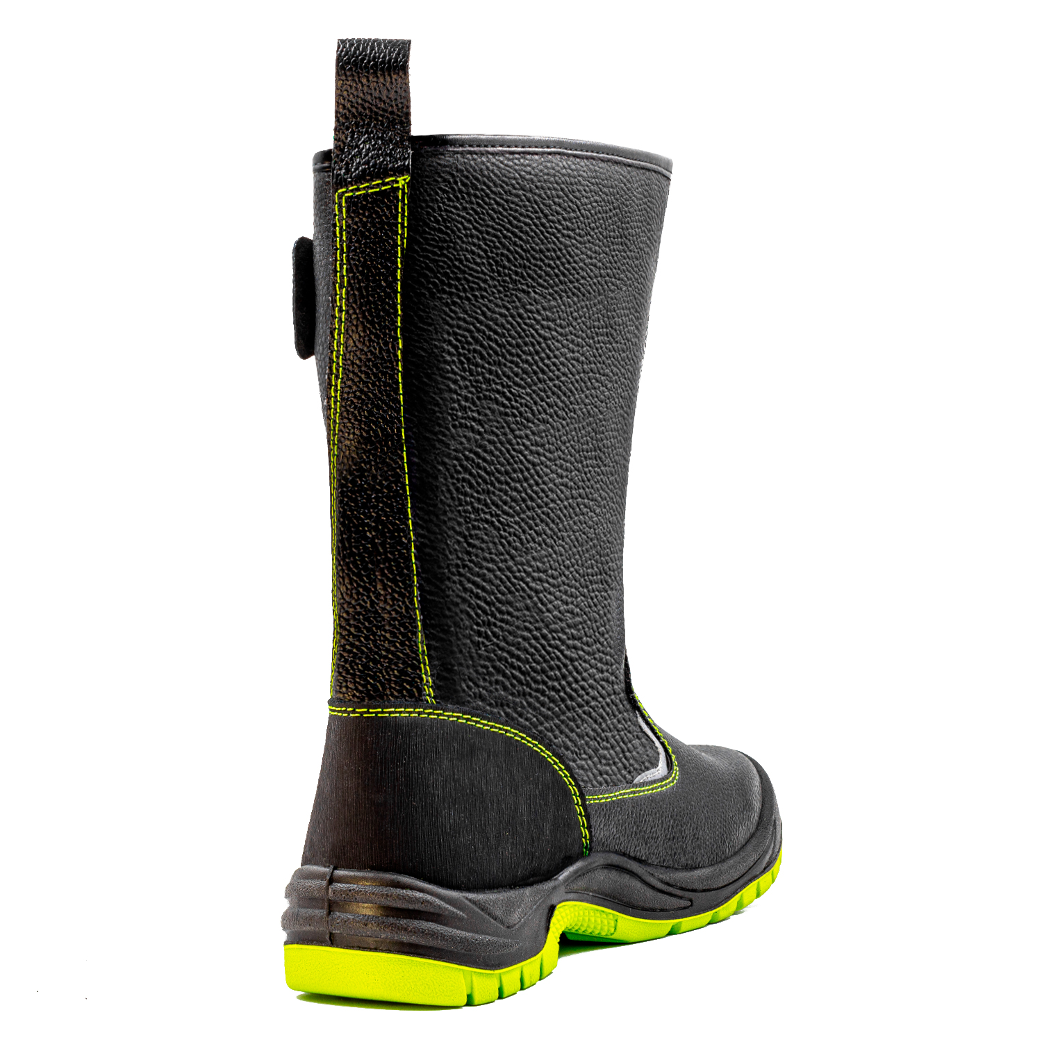 Защитные сапоги на двухслойной ПУ/ПУ (полиуретановой) подошве изготовлены из натуральной юфтевой кожи устойчивой к воздействию агрессивных внешних факторов. Носок защищен металлическим подноском с ударной нагрузкой до 200 Дж. Подошва изготовлена литьевым методом, устойчива к воздействию кислотно-щелочных веществ (до 20%), масло-бензольных соединений и нефтепродуктов. Рабочая температура эксплуатации ботинок от -35°С до +85°С. Дополнительный комфорт для ног и защиту от ударных нагрузок обеспечивают амортизатор в пяточной части ботинка, усиленный протектор и дополнительная защита носовой части. Анатомическая стелька из ЭВА обеспечивает комфорт носки и снижает нагрузку на стопу.
