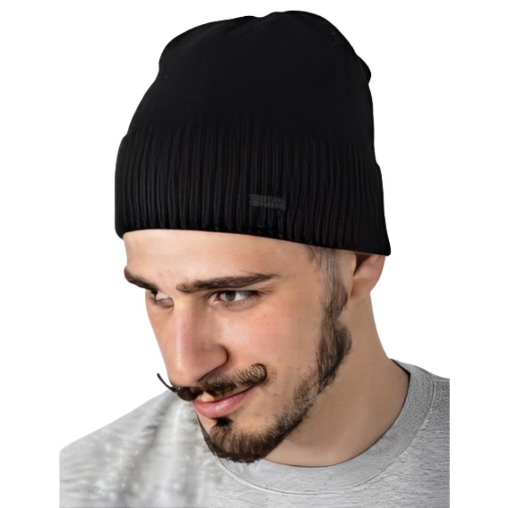 Шапка мужская гладкая, двойная полушерстяная с двойным отворотом. Цвета: чёрный, тёмно-синий, серый. Люкс, мелкая вязка. Шерсть 30%, акрил 70%, подкладка-флис, размер универсальный.