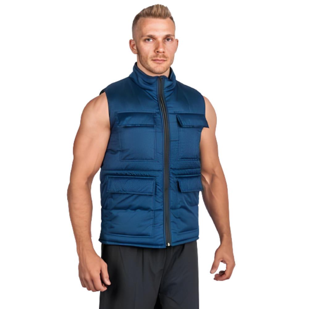 Жилет утепленный на молнии с четырьмя карманами, застегивающимися на контактную ленту.