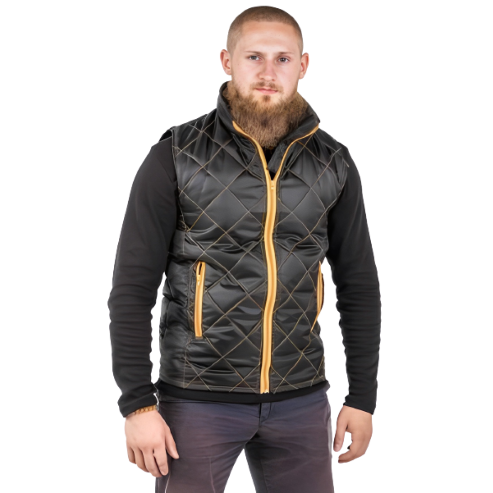 Жилет утепленный на молнии с двумя карманами по бокам на молнии, прорезные с втачной листочкой. Стеганная ромбами. Модель универсальная. Молния витая, подкладка Таффета 190т, воротник стойка. Подкладка Таффета 190т, основная ткань Дюспо, синтепон 200г/м2